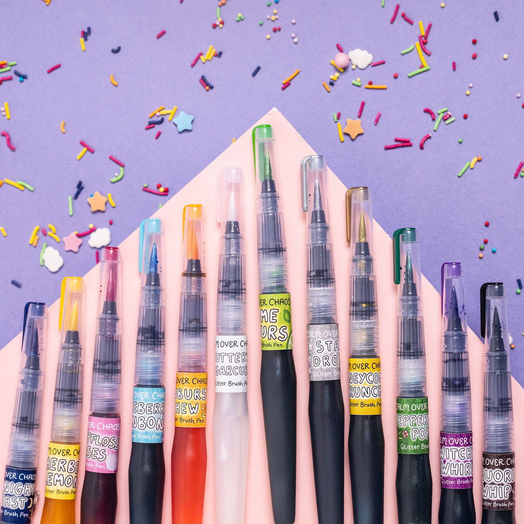 All 12 Glitter Brush Pens - every single glitter shade we make, bold, juicy, and ridiculously sparkly.