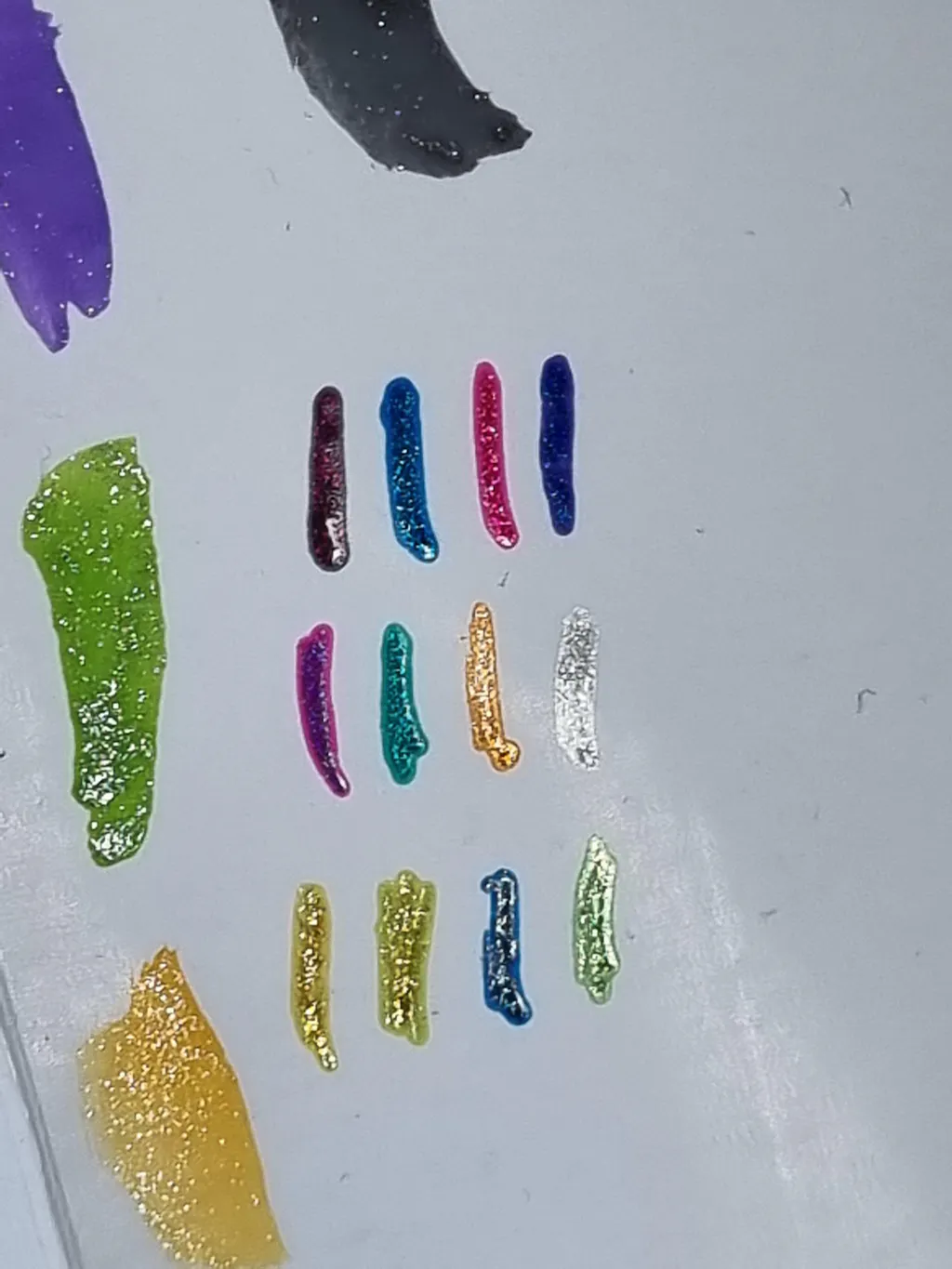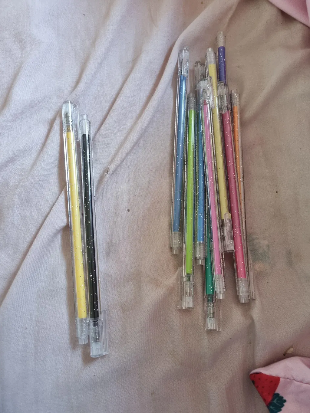 I’ve been looking at these pens for a while and decided to finally treat myself to them. They do not disappoint!!, they are so sparkly. They are different than other glitter gel pens I own in that the colour ink has different colours of glitter in each pen too. Whereas the others I own are coloured ink with silver glitter in each pen. So happy I bought these!!!, they are beautiful 😍